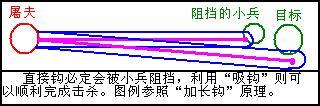 这是一种大家还不了解但却非常实用的出钩技术。其原理和“加长钩类”似,我们同样用图片来进行说明。