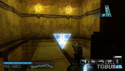 以防防御系统和敌人的两面夹击。在通道中可以看见本关的第三个存储点,进入下一个房间,首先在墙