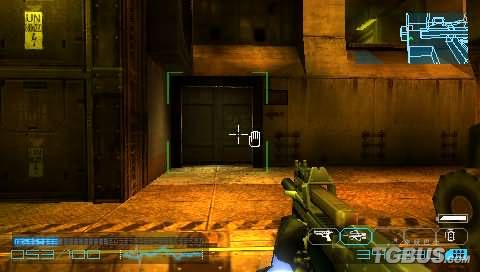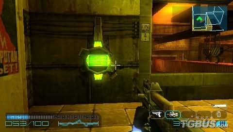 到达本场景的右半侧时,必须迅速入侵开锁进入这个门,因为在这个场景有一个机枪式防御系统,很具有威胁性。