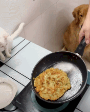 有的时候天降馅饼就是这么简单,狗狗只需要在你做饭的时候耐心等待就可以了。当然也可能会有未知的危险。