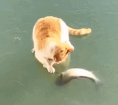 猫咪的疑惑,为啥这鱼看的如此清楚就是吃不到呢?其实猫咪应该想想自己为什么能站在水面上啊...好吧,其实猫咪大人无所不能。