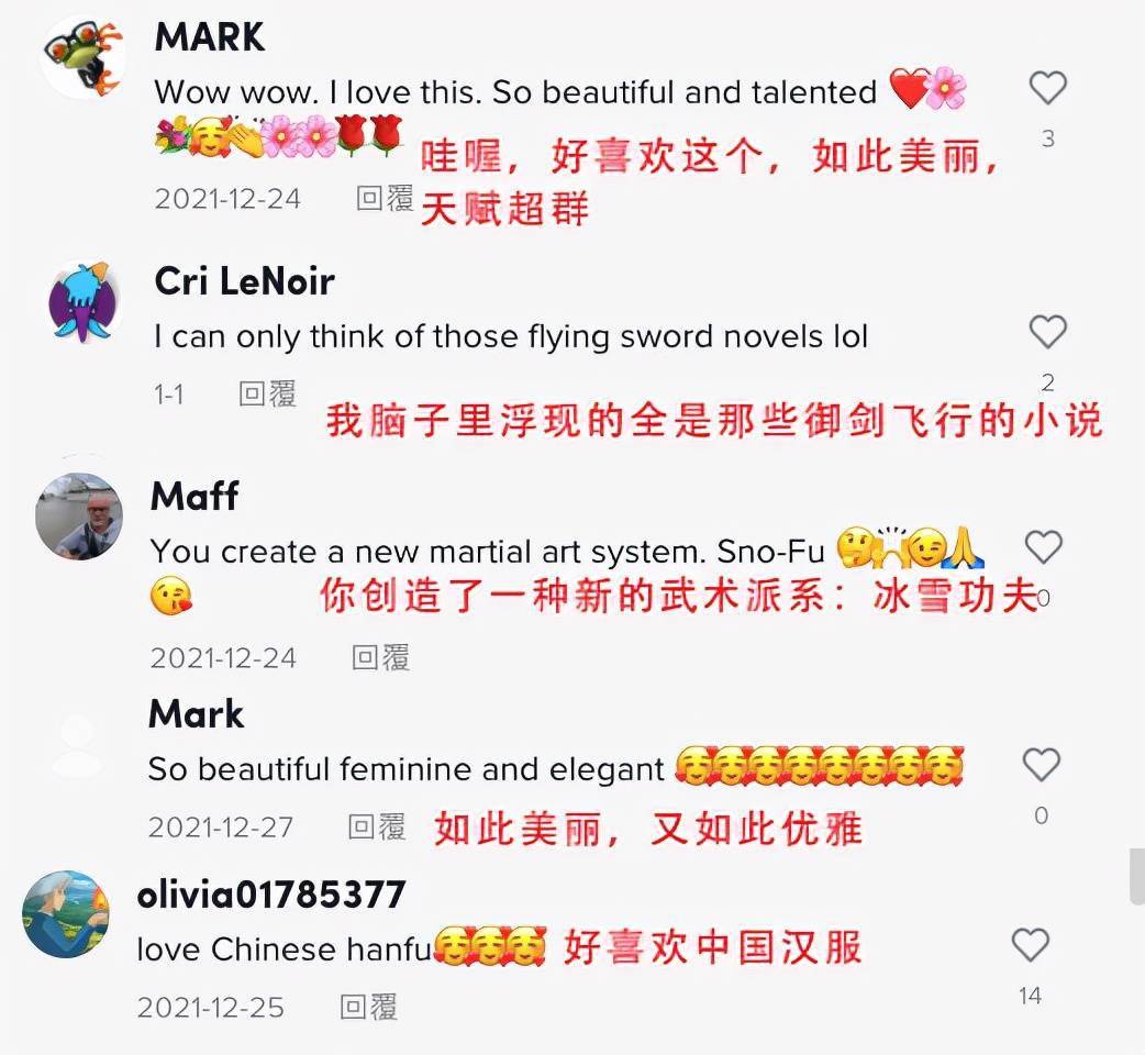 有网友看到后表示,明明可以靠颜值吃饭,偏偏这么有才华 。 外国网友则表示,她创造了一种新的武术派系:“冰雪功夫”。