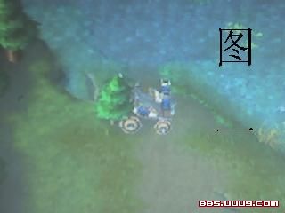 车还可以放到中路的两侧来当防止敌人偷袭,以下给出两幅图片说明具体的摆放位置;中路左侧的放置点为“图1”(中路左边有一棵小树位置很明显),左侧的车头要尽量对准河水方向,