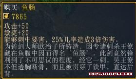 属性分析:大家对比就可以看出来了....赤宵和鱼肠就属性增加上来说 是一样的...不同的只是额外属性...值得注意的是 吸血效果是不能和毒和腐蚀效果叠加的...更多的来说 赤宵提供的是英雄的生存能力和持续作战能力.... 有个关于远程英雄的理论..就是远程敏英相对近战敏英来说的优势和战斗时间是成正比的...无疑 赤宵是很符合这个前提的..