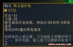 属性分析:又1把提高伤害输出的神器....很明显..这把对伤害提高的能力要高于滚云枪 1/4 的几率3倍伤害... 你可以简单的想想...打4下额外出1次相当与3下的攻击..就是打4下相当于6下....伤害提高是 50%(没错..我这样算是错的....=。= 人丑可能1下不出..人帅可能下下都出) 而且可以发挥 XXX+XX=XXXX 中XXXX的伤害...