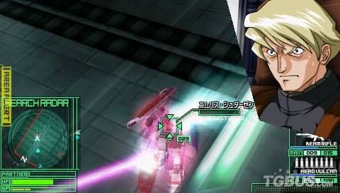 ACE对战:本关首次出现使用线性武器的MA敌人,无论攻击和HP都超高。其攻击方式主要就是线性炮的射击,威力极高,要看准来躲避,僚机能力不强的话很容易被击破的。攻击他的时机是其进行旋回的时候。解决后还有2名杂兵,消灭后过关。