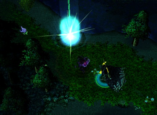 下面这个图是队伍Gank死灵法师。虽然我人不在那,但我在河道放了陷阱。我的队伍要杀死死灵法师。在使用了回复后看上去他似乎能跑掉。幸运的是我刚放了灵能陷阱。他进入了陷阱,然后嘣!他完了。