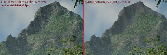 现在任何卡运行Crysis开抗锯齿都是十分奢侈,游戏茂密的植被和各种shader都会贪婪的吃光你的显存,即使你使用8800Ultra SLI也不可能在全特效开启AA流畅的运行,降低其他画质来开AA与其不如提高其他画面设置,这样对画面的效果提升会更而显著。不过Crysis还提供了边缘AA(Edge AA,相当于软件AA,对物体的边缘进行模糊处理还缓解锯齿,《幽灵行动》最新作就是采用这种方式的AA)玩家还是可以尝试用r_UseEdgeAA 2开启Edge AA,虽然这种方式的AA效果不如MSAA,并且边缘部分会变得模糊,但还是起到的AA作用,并且速度损失也不大。