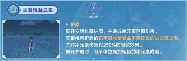 (因莱依拉的护盾对冰伤有250%的吸收效果,这个机制也属单独的乘区,如果面临的所有伤害都是冰元素伤害,则最终吸收量还需×250%,也就是12065×250%≈30163)。