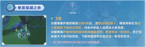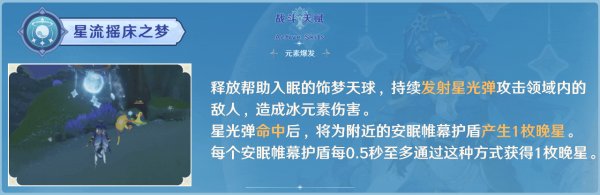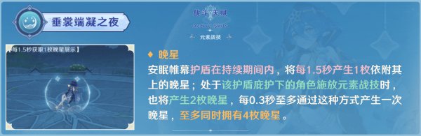 二是在护盾存在期间,驻场的角色施放E时可以生成2枚晚星;