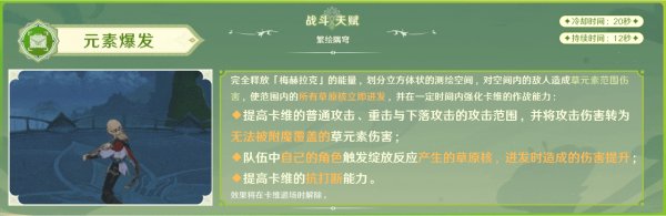 只要是队伍里的角色触发绽放反应生成的草原核,其爆发伤害都会得到提升,联机时只对自己的角色生效。