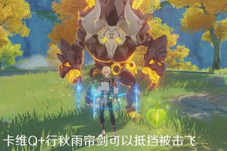如上图,卡维的抗打断+行秋雨帘剑提供的抗打断可以抵挡住被击飞的攻击。