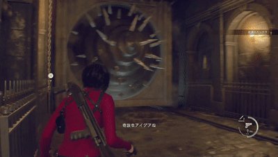步骤四:陷阱启动后,快速射击3个鸟形铜锣,一个就在头顶上可以拉绳或直接射击,剩下两个在门外左右各一个,射击即可