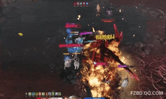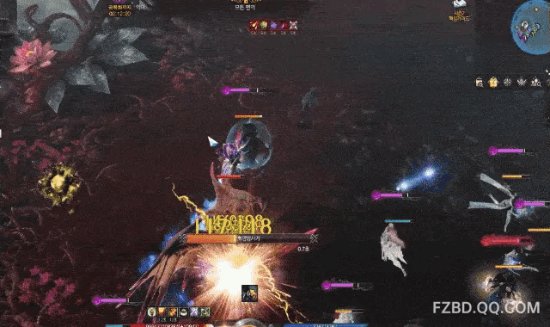 常规处理出现错误就会像这样,高额伤害加魅惑值急增从而团灭,所以现在大家都背对,如图中出现红色气旋的时候全员按凝时药水抗过去。