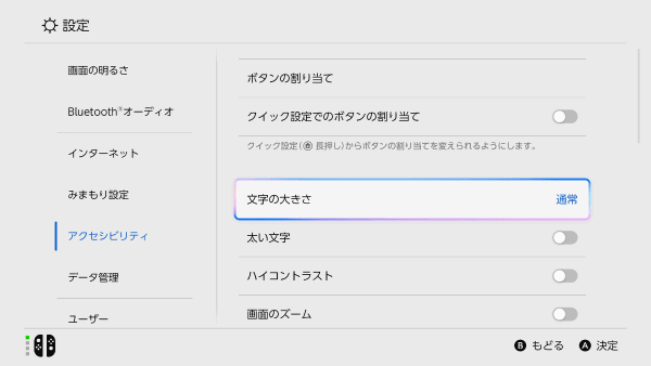 可以调整HOME选单及主机设定画面显示的文字大小及粗细度。(部分功能如Nintendo eShop等除外)