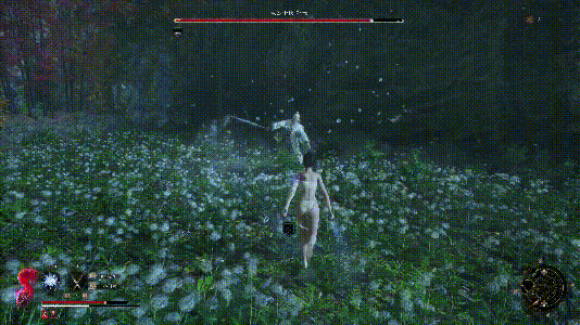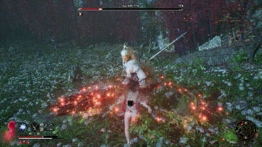 连击回羽:连续轻攻击至第6刀命中,触发技能【清影】效果,回复1根羽毛,并且触发【噬血】回复生命。