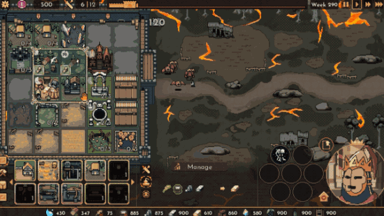 啊,我光辉璀璨的王国!在这片土地上,农民辛勤劳作,矿工勤恳采矿,骑士认真训练……但只有我盯着他们的时候,他们才会全力以赴!我的目光就是律法,我注视的地方蓬勃发展,可若是我移开视线,又会如何?怠惰!混乱!我必须做出明智的选择:是监管农田,获取食物?监管矿脉,攫取财富?还是监管兵营,强化防御?有了足够的资源,我便可以扩大全知全能的视线范围,保证我的王国繁荣发展……确保我的统治之下无人懈怠!