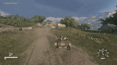 在追逐途中,卡契尼会向左拐,跟上以后,他会在下图的位置沿着马路向前开然后右转,这时候你可以直接离开马路走右边的草地直接赶上他,运气好可以把他截停。
