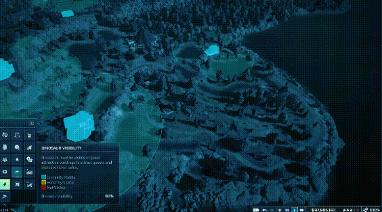 利用管理视图来查看有关关卡设施、游客与恐龙的各种实用信息覆盖图。