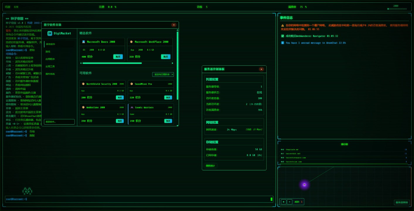 当老式CRT屏幕泛起雪花,你指尖跃动的代码正编织着数字时代的曙光。从搭建第一座种子服务器开始,听硬盘嗡鸣与调制解调器的拨号声交织成曲,看资源管理面板上跳动的字节如春芽破土。破解加密算法时键盘泛起幽蓝微光,上传稀缺软件瞬间访客数如雨后春笋般攀升。随着科技树层层点亮,你的数据帝国从地下室机房蔓延至全球节点,每一次带宽升级都让世界听到指尖敲击出的时代强音。