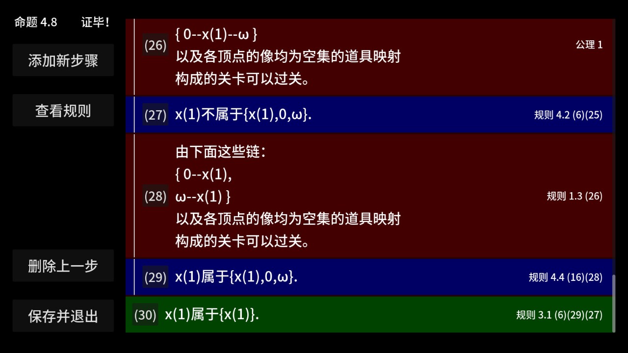 清晨被好友的"逻辑挑战"消息轰炸醒?打开《Prove You Can Win》瞬间变身推理达人!上午和队友在公理迷宫里手舞足蹈——你推导"如果A则B",我反驳"但C不成立",键盘敲得像在弹奏逻辑交响曲。午后组队攻克"哥德尔谜题",有人负责翻数学典籍找漏洞,有人疯狂试错指令组合,突然屏幕亮起"QED"时,整个聊天框炸出满屏的"666"!不过要小心:当看到第20页定理证明时,记得给队友递杯咖啡——毕竟,谁能拒绝和伙伴一起用逻辑征服世界的快乐呢?