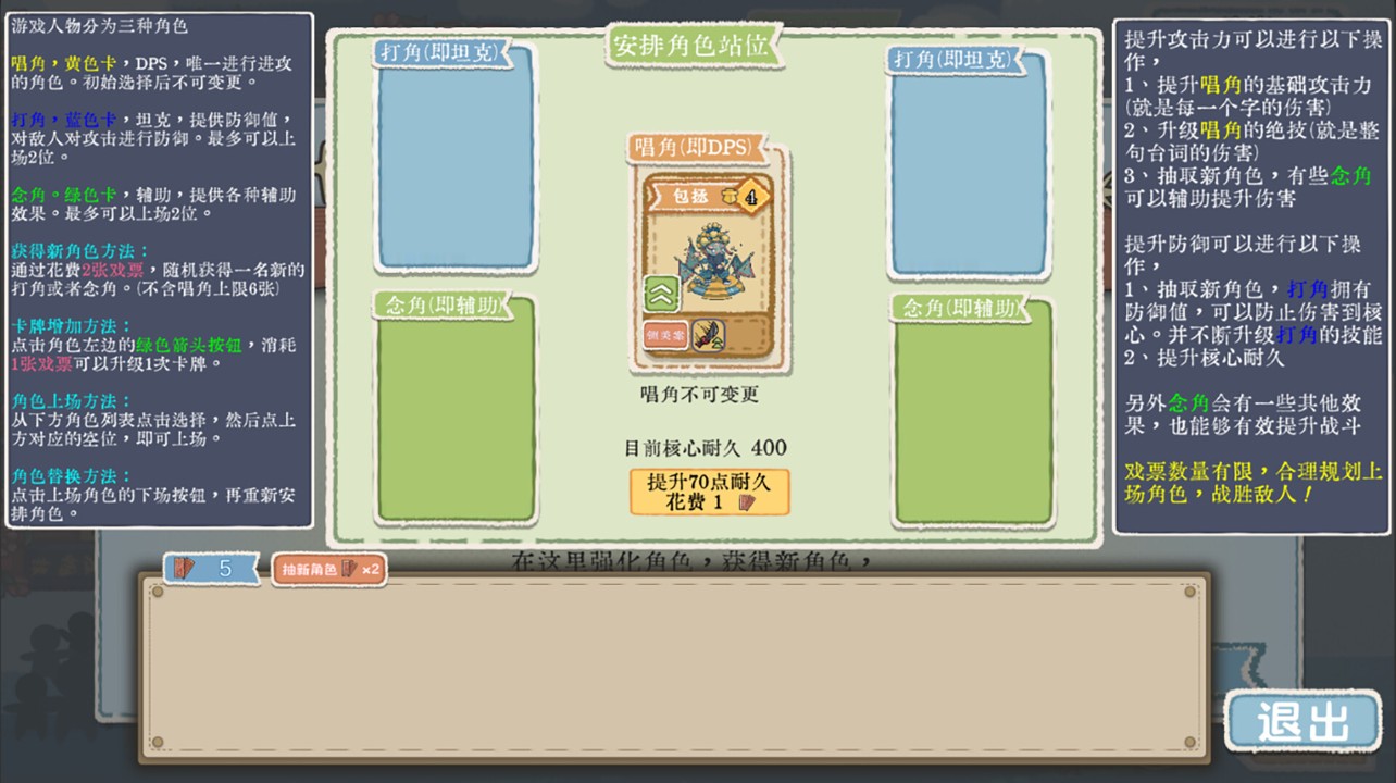 梨园深处,传奇新生!《出将入相》以京剧为魂,铸就策略肉鸽新章!解锁12大流派角色,每名角色独享30层技能树,唱念做打皆可化为战场绝技。通过"戏文试炼"副本收集200+种戏曲装备,组合出超千种战术流派。从生旦净末丑五大门派中择业,每场对战积累经验值解锁专属连招,更有"名角传承"系统让角色突破等级桎梏,成就梨园霸主!让每场京剧对决都如行云流水!