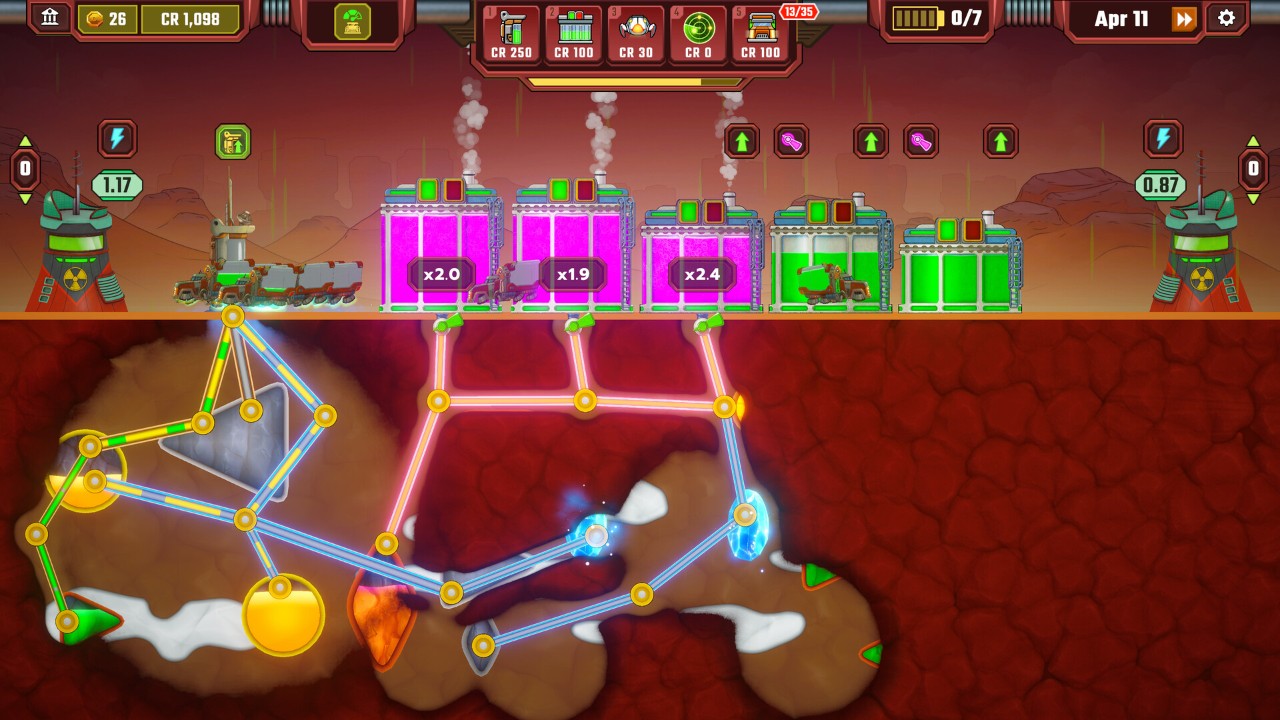 于浩瀚星海之遥袢,有颗被奇趣能量浸润的异星,其上《Nuice Industries》的传奇悄然启幕~在这片资源丰饶却暗藏玄机的土地,你化身为精明果敢的能源大亨,以超凡管理智慧为笔,以星球变幻莫测之天气为墨,绘就一幅幅资源争夺的壮丽画卷~或智取巧夺,利用气候之变,让资源如潮水般汇聚;或妙手布局,于竞争对手间织就无形之网,令其资源流转受阻~在这场没有硝烟却充满智谋的对战中,唯有最睿智者,方能登顶资源之巅,成就星际传奇!