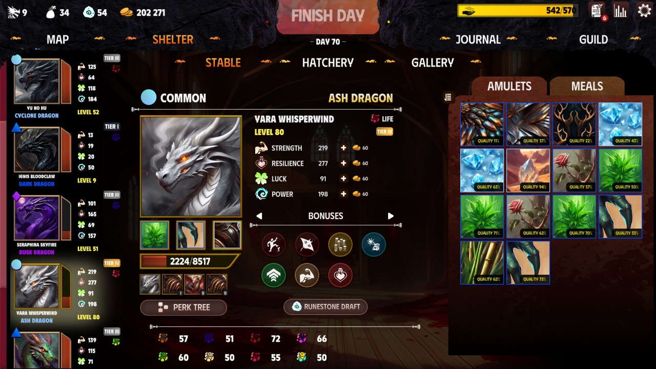 在《The Dragonhood》的奇幻纪元中,你将成为龙族传承的守护者。晨光初现时,于隐秘巢穴寻觅龙蛋,以元素之力唤醒沉睡的幼龙;正午骄阳下,指挥龙群展开远征,它们将穿梭于迷雾森林与熔岩峡谷,自动挑战沿途守护者,为你带回珍稀宝物。暮色降临,深入随机生成的地牢迷宫,指挥三龙小队破解机关陷阱,与镜像敌人展开3对3策略对战,每场胜利都将解锁独特技能树分支。随着龙群壮大,可为其佩戴从50余种护符中精挑细选的装备,组合出专属挑战风格——有的龙化作雷霆使者,有的则成为治愈圣者。当30余种龙种突破26种进化形态时,你将见证它们从幼雏蜕变为传奇生物,用鳞片与羽翼书写属于自己的龙族史诗。