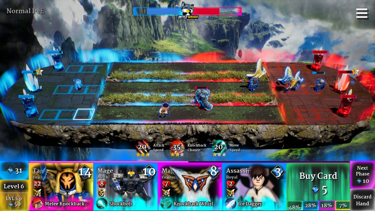 Battle Waves: Card Tactics融合塔防与快节奏卡牌对战,玩家可召唤小兵以波次攻势摧毁敌方基地。通过收集拥有独特机制的卡牌,构建专属强力卡组,在Roguelite战役模式中挑战五大章节的强大敌人,或参与在线多人排位对战,运用策略与技巧攀登排行榜。解锁各大阵营,掌握协同作战能力,探索数千种战术组合,不断升级与部署卡牌,打造无敌阵容。