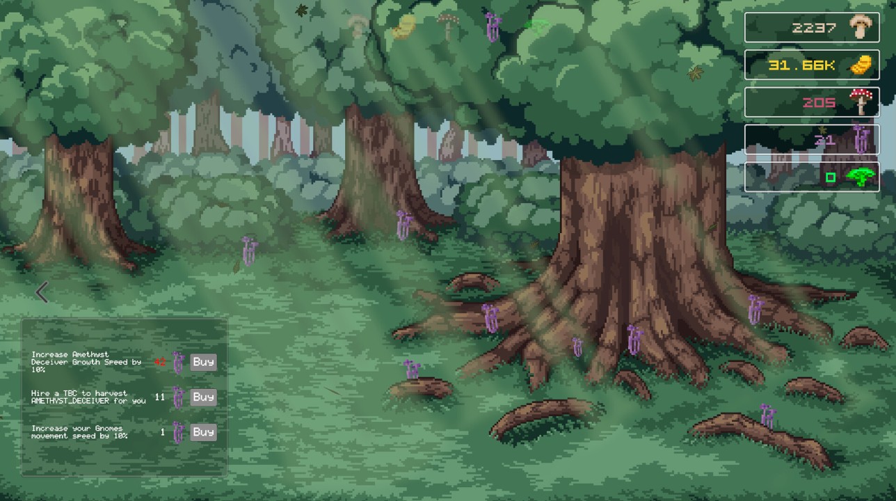踏入Mushroom Clicker的奇幻世界,化身蘑菇巫师开启悠闲冒险。画面中,色彩斑斓的蘑菇森林生机盎然,各类小生物穿梭其间。玩家雇佣这些小帮手,收获形态各异的蘑菇,解锁多样技能。随着游戏推进,解锁的蘑菇和技能越来越多,森林的景象也越发丰富,从普通蘑菇田到神秘蘑菇洞穴,每一处都藏着惊喜,等待玩家慢慢探索。