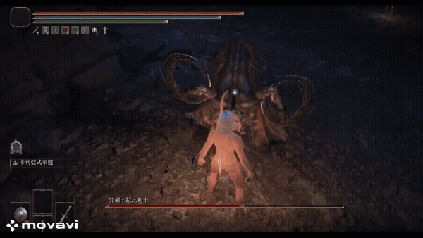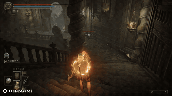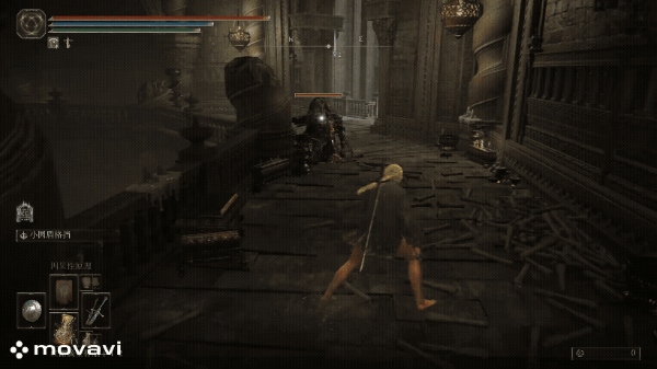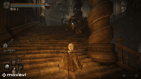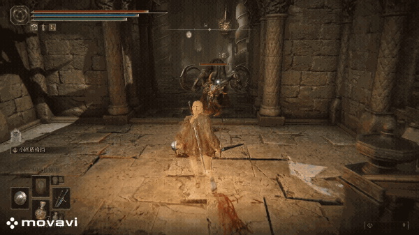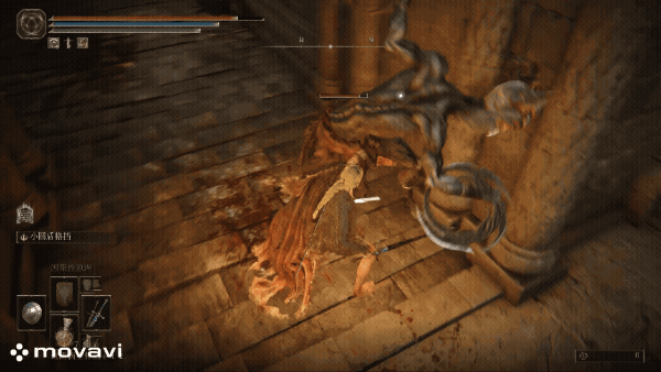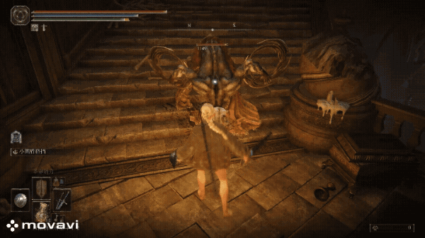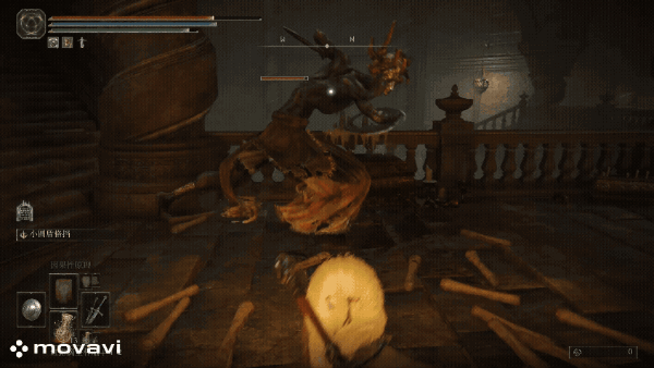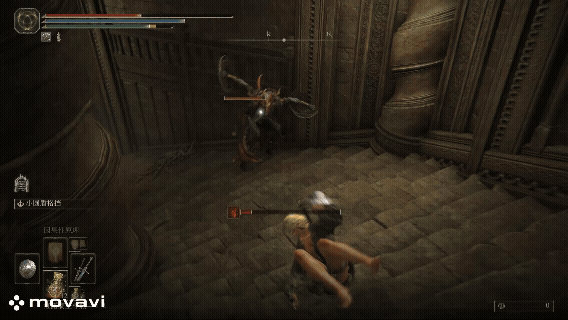 跑向玩家后跳起下砍,在与玩家有一定距离时施放,较易格挡