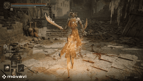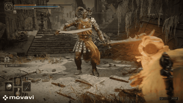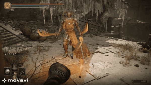 跑向玩家后,双曲剑上抬并下挥的瞬间格档,有明显的停顿点