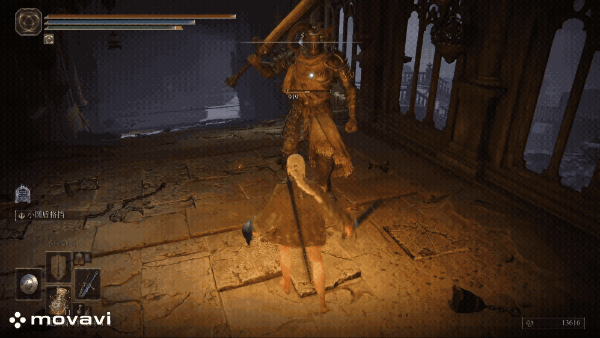 在玩家远处时施放,快跑到面前时剑会再往后拉,之后用腰带动身体挥剑,挥动剑的瞬间格档