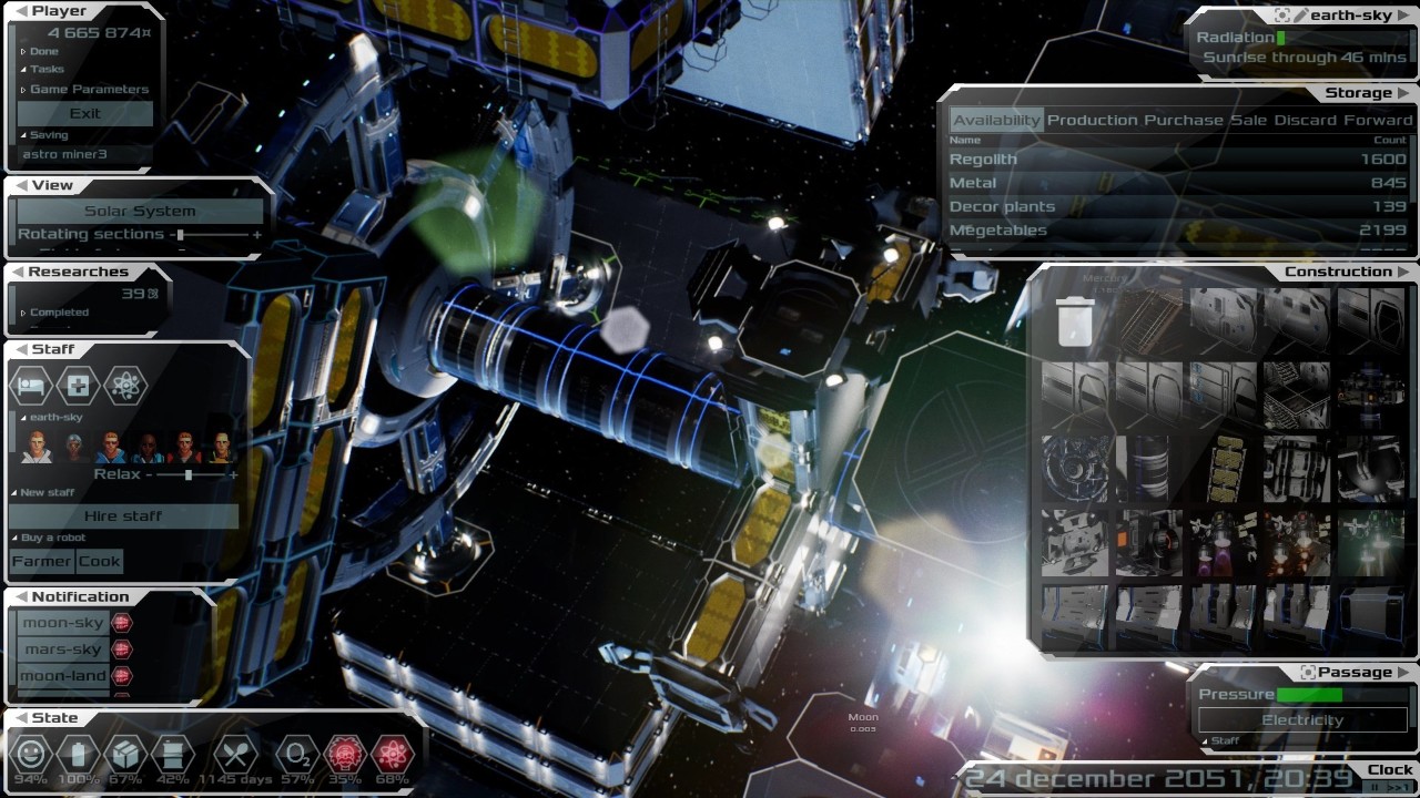 Solargene这游戏让玩家当太阳系殖民者,去体验真实的太空探索和殖民过程,游戏是Alexander Semenov做的也是他发的,游戏里宇宙环境和天体挺多的,玩家得好好规划殖民地怎么建设和发展,还得应对各种突发事件和外星威胁,游戏里资源管理,科技发展,人员招募这些模拟元素都有,画面做得也还行,音效听着也凑合,整体来说这游戏对于太空迷和模拟游戏爱好者来说,还是挺值得一试的。