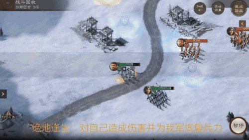 绝地逢生是一个牺牲自己为友军恢复的战法,受武力影响。
