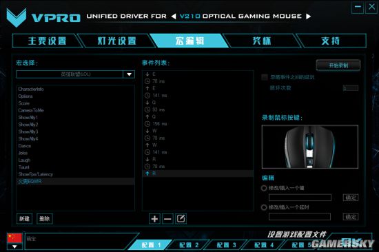 雷柏V210驱动宏编辑中自带的相关设置《英雄联盟》设置,没有为玩家加入各路英雄的连招,但是玩家可以通过宏编辑新建招式,一键触发玩转英雄本色。我们以“火男EQWR”,设置一个宏命令。首先我们在“玩家自定义”下新建一个宏命令------“火男EQWR”。