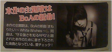 《圣恩传说》主题曲确认,采用BoA的新曲《まもりたい~White Wishes~》。
