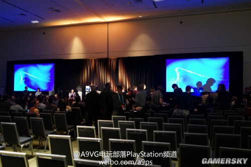 由于PlayStation VR虚拟现实设备将在GDC游戏开发者大会公布的传闻已久,所以即使早到现场1个小时30分钟都得排在第一队的最后。在等待的时间中,一直提醒我们仅可以进行拍照而不能摄影。伴随着时间向5点45分推进,越来越多的GDC参会者来到这里排队。GDC志愿工作者多次清点排队人数,在距离正式开始1小时已经估计排队超过150多人。