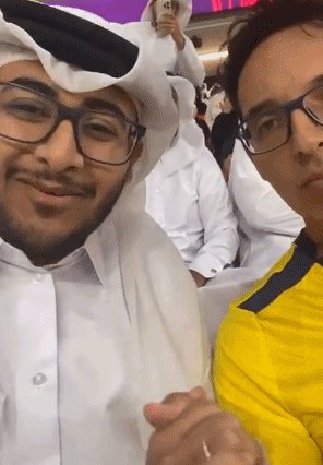 但随后,两边球迷又和好,坐在一起拍视频握手,互相称赞了一番:“卡塔尔很漂亮,卡塔尔人很友好!”