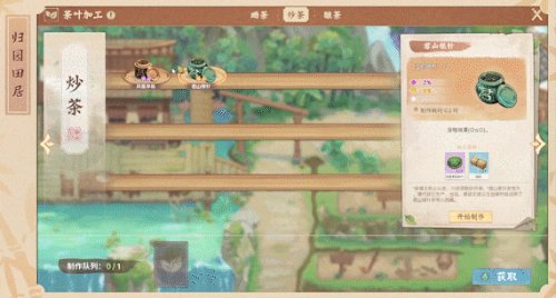 而在农场打造好独立的茶园后,玩家就可以在此种植茶叶,通过晒、酿、炒等方式加工制茶,泡一壶清茶,喊上三五挚友相聚,品茶赏月,乐得逍遥。