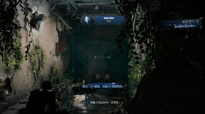 比起战斗系统,潜行部分的改动则委实不多,只新增了一个能在空中架设蛛丝索的机制。而且,由于彼得并没有迈尔斯的隐身能力,你在操作他时,也无法在敌人被发现后立刻隐身来暂避锋芒了。所以,你也许能感受到《漫威蜘蛛侠2》并不太鼓励玩家潜行制敌,而是更想让玩家一切策略转战斗——尽管你在被发现时,也会有新增的敌人援军作为惩罚。