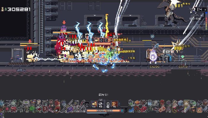 在这层“压力”之外,《雨中冒险》在玩法方面的设计也充满特色。各种随机道具的效果可以无限叠加,且没有收益递减。有15%概率造成额外伤害的道具,拿到7次就是100%触发。一些看起来没什么用的白装,在叠满后效果甚至不输高级的红色装备。
