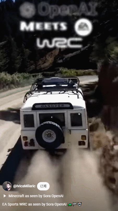 对游戏从业者来说,最受关注的案例可能还是那个模仿“我的世界”风格的视频。在片段里,Sora相当全面地还原了游戏中的景观、UI、角色行动视角以及环境生态,尽管在细节上仍有很大欠缺,但能围绕一个电子游戏本身生成模仿得八九不离十的视频,就已经足以令人惊讶了。