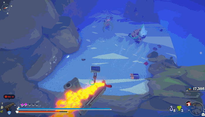 或许是受限于经费和制作经验,作为一款ARPG,《蟹蟹》在许多层面都存在显著的设计问题。首先就是角色间的碰撞Bug,敌人的普通移动可以直接推动玩家角色。这使得敌人在小型平台上甚至不需要攻击,只是朝着玩家方向移动即可将角色挤落悬崖。