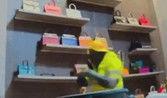 监控画面显示,这两名蒙面男子凌晨时分带着一个大垃圾桶闯入商店,将大批爱马仕包从货架上拉下来直接扔进垃圾桶内。据报道,其中一名嫌犯在作案几小时后被捕,警方表示,目前案件调查仍在进行中。