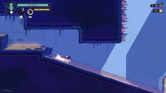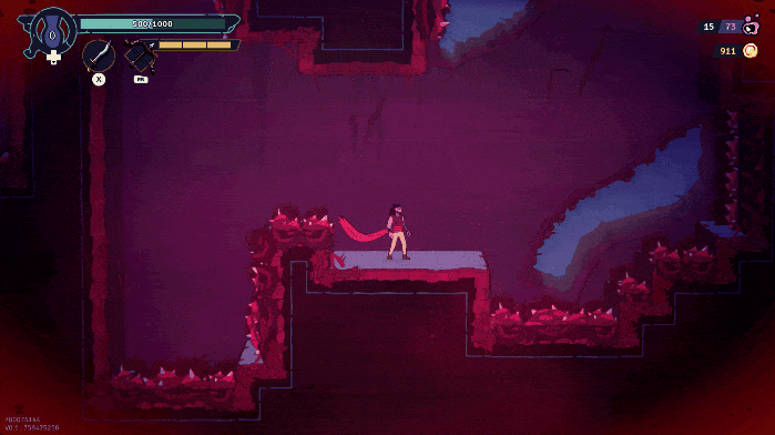 在本作银河城式的关卡中,这个能力被发挥得淋漓尽致。因为它可以帮你越过充满钉刺的深坑、登上难以触及的高台、甚至脚不落地就可以克服像《蔚蓝》那样困难重重的关卡。