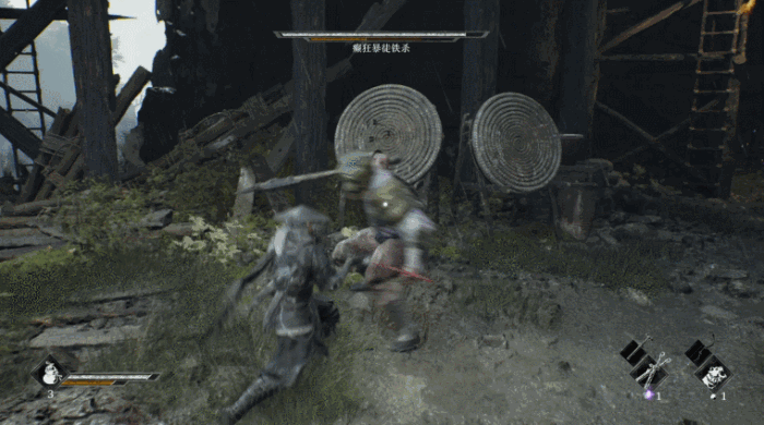 值得一提的是,招架状态并不仅仅是一系列防御动画的“自动播放”,玩家的连续招架动作会根据使用的武器、敌人的所持武器、彼此间的身位与连段阶段等因素产生眼花缭乱的动作派生,尽管玩家实际做的操作只是按住格挡键不放,但金铁高速交击时迸放的火花与行云流水的过招动作还是能给人极大快感。