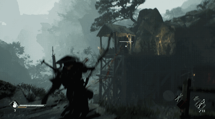 在本次试玩中,你可以接触到“弓箭”“喷火器”以及“虎炮”三种影之武装:喷火器的连绵火焰,对于处于防御架势的敌人有着奇效;而弓箭则可以悄无声息地偷袭,在暗中一击致命;虎炮则会以一发堪称华丽的爆炸,惩罚所有不曾加以防御的对手。它们在提供更多作战方式的同时,也会在侧面地提醒着你,这是一个具备多元化元素的、变格武侠的世界。
