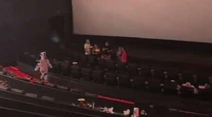 新版《龙卷风》上映,有人在影院cos老版《龙卷风》中那只奶牛,在电影院里来回绕场奔跑。