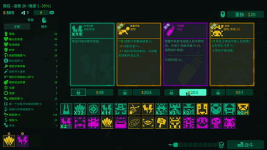 技能系统是游戏的一大亮点。你可以装备最多四种手动技能,每个技能都可以升级两次,并拥有独特的增强效果及至少三种特性。技能不仅是你主要的伤害来源,同时能够触发强大的协同效应。在战斗中,技能的使用时机和方式极其重要。合理地选用技能,构筑你的防御Combo,便会产生1+1>2的效果,而这也是取得胜利的关键。你可以根据战斗的需要和个人风格来定制技能组合,使每一局游戏都有不同的体验和乐趣。